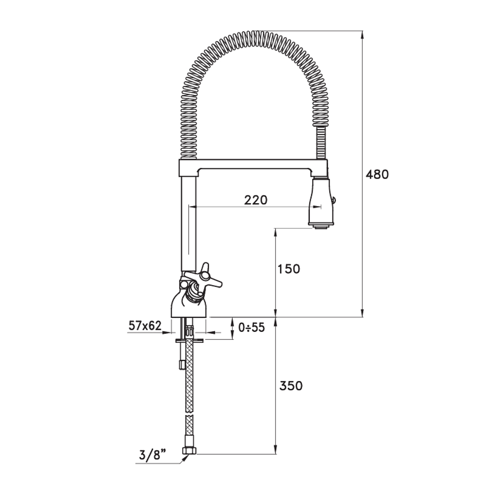 Single-hole sink mixer, with directional spout, doble jet shower