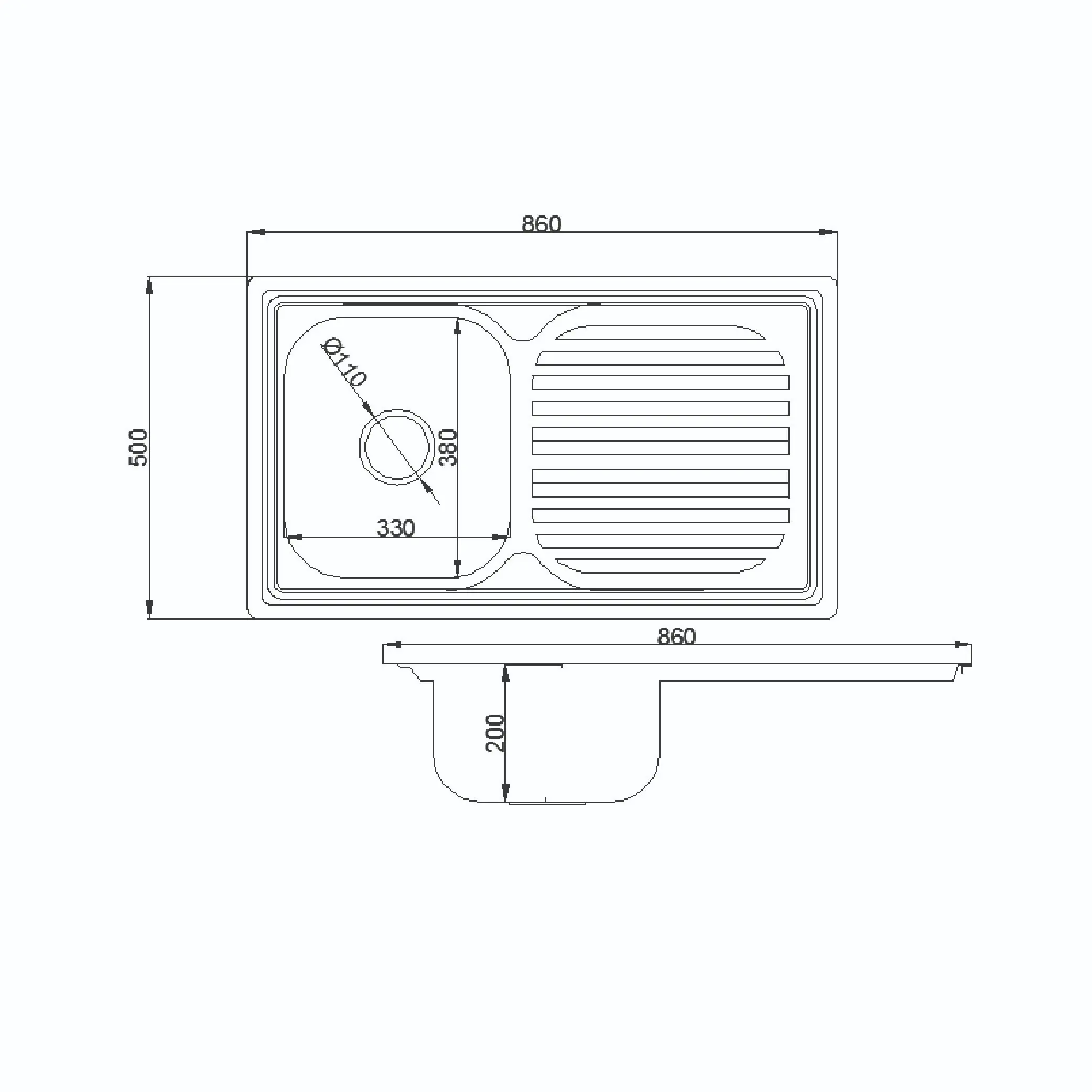 Dimension: L860xW500xH200mm